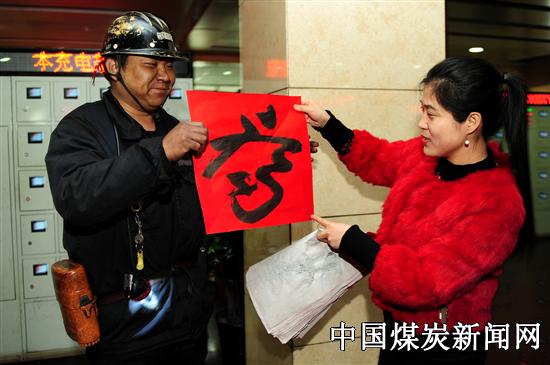 在煤炭形势持续严峻,经营销售十分困难的情况下,该公司领导时刻想着为员工做好事、办实事,体现了公司党政及各级领导对职工的关心和关爱。员工们手里拿着红彤彤的春联及一幅幅“福”字,高兴地说,义务写春联虽然是件小事,但说明上级领导时刻想着员工,这就是对我们极大的关心,能生活在这样的矿区,感到很幸运,我们一定会尽力做好自己的本职工作,与司马共同抵御煤炭市场的寒冬,迎接更加美好幸福的明天。