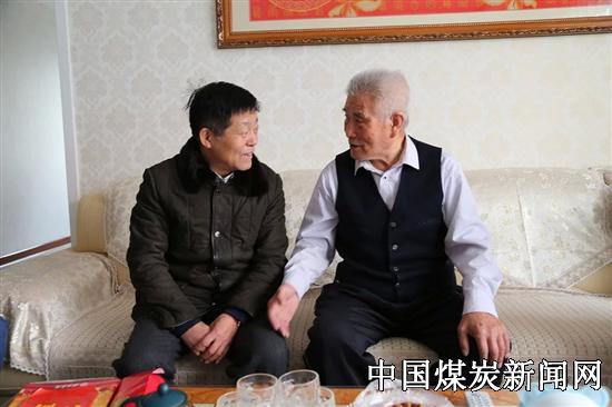 阳煤集团五矿党政工团十分关心企业的弱势群体和为企业发展做出突出贡献的老干部、劳动模范、先进工作者,把“走访慰问”作为一项常规活动,把慰问对象看作是自己的亲人,每逢传统节日,矿党政工团都组织开展走访慰问活动,让大家感受到来自企业大家庭的温暖。通过开展活动,凝聚了人心,使企业呈现出一派温暖、和谐的氛围。在慰问五矿老干部时,一位老领导感动地说:企业比儿女亲,过年的礼物送在心。党的关怀温暖如春,节日慰问感激不尽。 图(一)党委书记祁致祥慰问五矿第一任党委书记李荣。图(二)矿长宁斌慰问老书记杨立业。