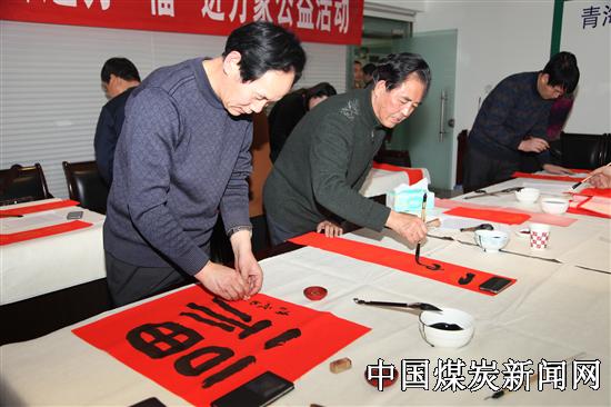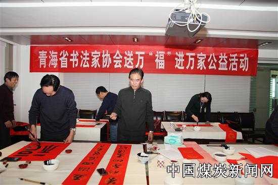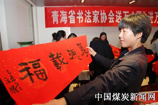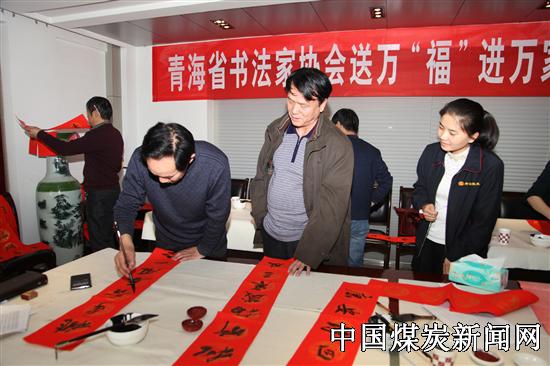近日,青海省书法家协会开展送万“福”进万家公益活动,组织我省著名书法家走进青海省能源发展(集团)有限责任公司给矿工送春联和祝福。在此次公益活动中,省书协常务副主席陈治元,副主席高海源、蔡永峨、徐小江、王振宇、郭强,以及我省知名中青年书法家杨京耀、劳建忠、李炳筑、任学军、谢全胜、习建林等现场挥毫泼墨,精心创作,书写了230余幅春联和“福”字,赠送给了企业员工,深受大家的喜爱。