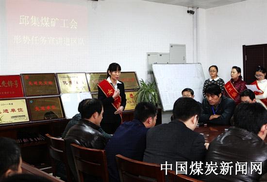 宣讲员王金燕说:“当前煤炭形势越来越严峻,咱矿相继提出了很多应对措施。现在部分职工思想上有波动,我作为煤矿一名女工协管员,有责任有义务把企业形势任务以及改革措施传播给工友兄弟,并给他们加油打气,鼓励大家干好工作,和企业拧成一股绳!”
