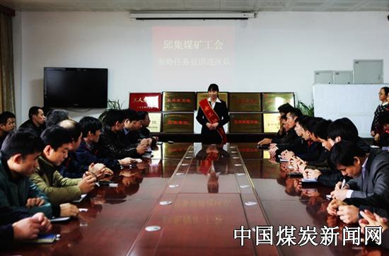 11月24日,在山东能源临矿集团邱集煤矿采掘区队班前会上传来铿锵有力的宣讲声,由该矿工会女工委组织开展的形势任务教育巡回宣讲活动正在进行。