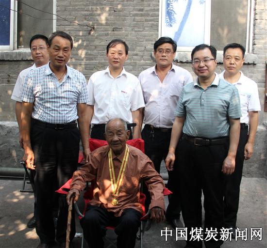 9月1日, 阳光明媚, 陕煤韩城矿业总经理陈永民同下峪口分公司(矿) 党政工领导、局退管处处长一行6人, 代表党和政府看望居住下峪口矿区的徐廷耀、焦占奎2位抗日老战士,致谢他们为抗战胜利和煤炭事业作出的卓越贡献,祝福他们晚年幸福快乐,并给俩位老战士佩带了“中国人民抗日战争胜利70周年” 纪念章。