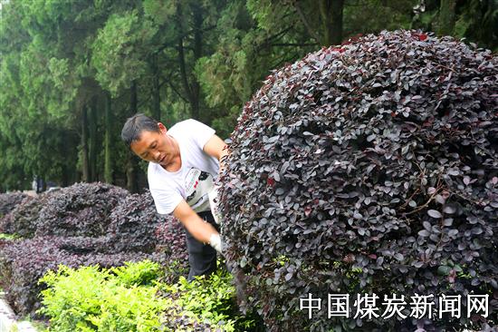 【本网讯】7月9日,贵州盘江股份公司土城矿职工正在对矿办公楼周边的花草苗圃进行“美容”,崭新的环境面貌让人心旷神怡,增添职工工作幸福指数。