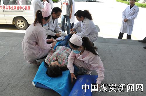 陕煤黄陵医疗中心于2015年6月11日下午3点组织医疗、护理、医技后勤等人员举行了重大交通事故应急演练。