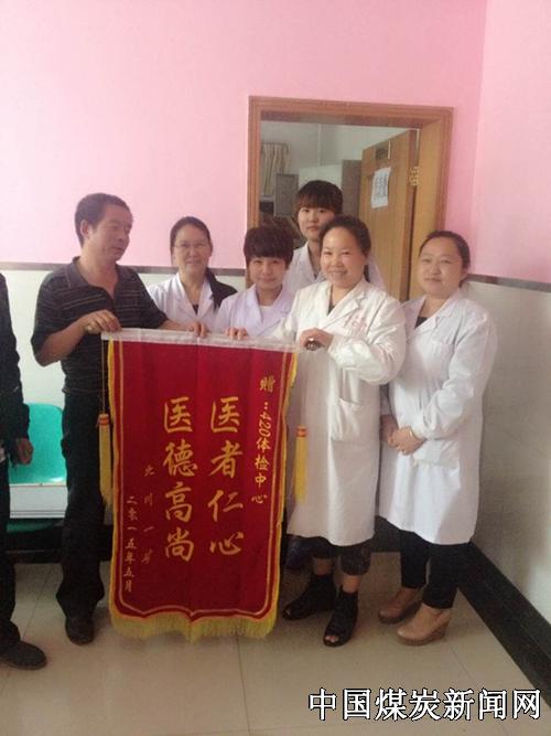 陕煤黄陵医疗体检中心刚开始接待体检人员,就迎来了这样一位中年男子,“我是黄陵北川一矿的,我来找你们体检中心负责人的…”在见到负责人之后,该男子亲切的说道“感谢你们体检中心这几天的辛苦工作,我们单位安排入职体检时间紧促,但是你们体检中心利用休息时间对我们人员入职体检,非常感谢你们,这里的专家医生、服务质量让我很放心,所以以后我们单位的入职体检我仍然选择在这体检,希望你们给我们严把关…”说着将一面绣有“医德高尚、医者仁心”的锦旗交给了体检中心工作人员的手里。