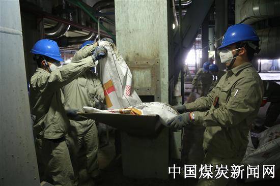 突击队员们盯着烈日,大汗淋漓,满脸黑灰,但他们不畏艰难,不言辛苦,经过短暂地原地休息,又迅速投入工作,没有一丝怨言。突击队冲锋在一线前沿,战斗在最需要的地方,出现在最紧急的关头,安全、优质地完成此次装填任务。经过一天的奋战,终于把近60吨4#锅炉填充床料装填工作圆满完成,为即将4#锅炉点火前做好准备工作打下了坚实的基础。据了解,二套动力站共有4台280吨/小时循环流化床锅炉。每次点炉前,需要为锅炉填充床料作为流化原料,供锅炉沸腾燃烧时传递热量。据统计,每台锅炉点火前需要加装50-60吨床料,人工装填需要40人连续作业5个小时左右。