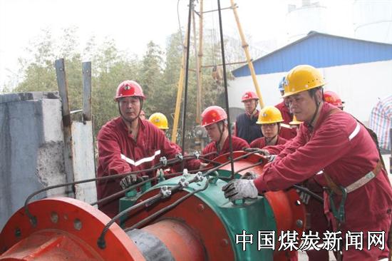上午7点30分,参加的27名职工分地面与井下两组,分别进入施工场地,提前做好现场各项准备工作。8点30分,下放工作正式拉开帷幕。由于井筒作业,空间狭小,安全系数低,人员分散,给施工带来难度。参战人员按照施工工序和责任分工,相互间配合默契,有条不紊。10点20分,又重又长的绞车主轴装置在信号工的指引下被缓缓吊起,好似一颗准备就绪待发的导弹,竖立在井筒上方。5分钟后,井上下通过通话对接核对,随着现场指挥员的一声令下,主井提升机缓缓启动,绞车主轴以0.5米/秒的速度开始下行。15分钟后,井下负450处传来消息,该装置安全稳顺的到达下井口平台。