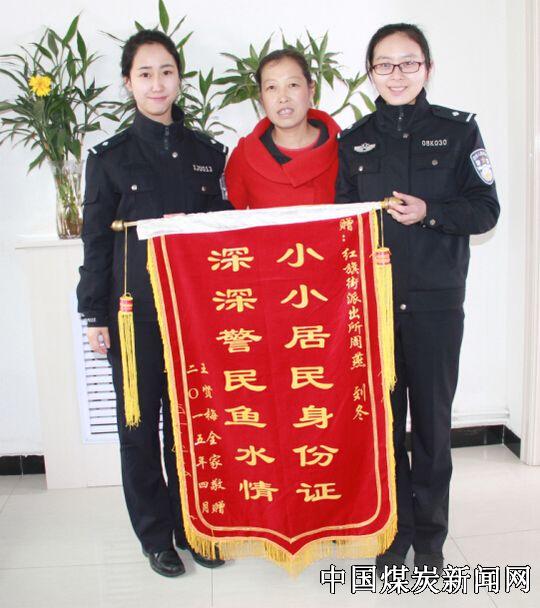 4月2日早上,王家河矿部小区的王贤梅给铜川市王益区红旗街派出所送去一面“小小居民身份证、深深警民鱼水情”的锦旗,表达全家人对周燕、刘冬的谢意。
