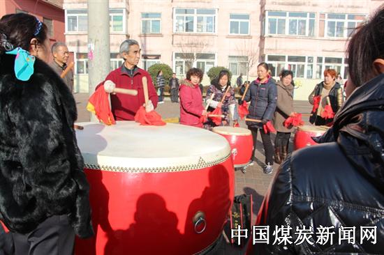 “咚 咚 咚咚呛 咚咚呛 嗒嗒 嗒嗒咚咚……”,震耳欲聋的锣鼓声是从矿区健身文化广场传来的。“看这手势,听节奏,注意配合”鼓乐老师严肃认真的讲。