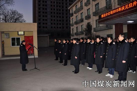 【本网讯】2015年元月1日早,陕煤化澄合铁运分公司办公楼前彩旗飘扬,百余干部职工着装整齐,统一列队办公楼前举行了隆重的升旗仪式。共庆2015新年的到来。