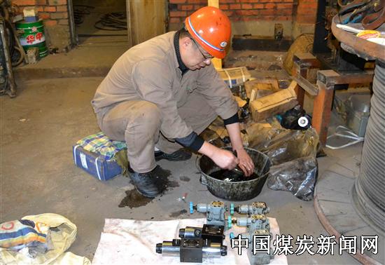该车间干部职工积极响应,紧紧围绕当前“降本增效、改革创新”工作重点,主动转变工作态度,认真开展“节支降耗、修旧利废”活动,努力降低生产成本。小宝鼎工段针对装矿站煤仓溜子口的两个侧面受落煤的冲击力较大,两侧面铁板容易损坏,溜子口使用时间较短的实际情况,组织职工集思广益,利用报废斗箱的铁板为溜子口两侧贴补加厚,大大延长了溜子口的使用寿命,缩短了更换周期,从而降低了生产成本。 由于索道各站点工作现场的粉尘严重,各液压设备动作频繁,液压元件温升较高等原因,导致液压设备内油腻过重,因而使电磁阀的阀芯动作经常受阻,液压元件频繁出现故障,属影响索道运转多发事故之一。机修工段组织电气班的职工利用业余时间,对更换下来的电磁阀等液压元件进行仔细清洗、研磨修复或更换阀心,大大降低了液压件的消耗量,进而减少了材料备件的消耗,全力实现“降本增效”目标。 图为机修工段电气班党员利用业余时间清洗电磁阀