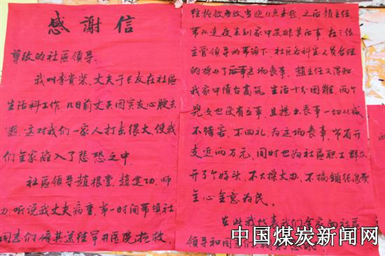 11月18日,陕煤蒲白白水矿社区街道张贴栏前人头攒动,两张大红纸上写满了朴实而真诚的话语,字里行间充满感激之情。大家边看边议论,不断伸出大拇指,赞叹声哗然。