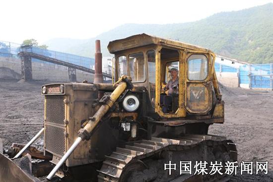 在烈日笼罩下的下石节矿储煤场,地面升腾着层层热浪。源源不断的黑色煤流承载着下石节人的希望,从千米井下一路奔腾8000多米到达这里。有着20多年驾龄的阚会明和年轻司机张龙驾驶着两台220型推土机,从早上八点开始就在这露天的储煤场里不停的忙碌着。老式推土机驾驶室里没有空调,经过高温烘烤,狭小的驾驶室内温度达到了40度以上。一个班整整八个小时,两个人除了换饭时下车稍作休息,其余时间全部在驾驶室内度过。从煤场周边到回煤坑平均80多米的战线上,他们以高度负责的精神一遍又一遍复制着精准无误的平煤、推煤作业,和工友们齐心协力保证地销仓每天原煤装车需要。