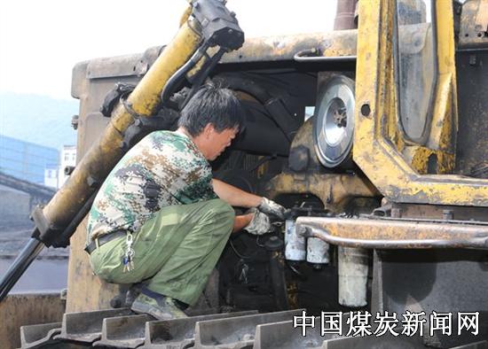 煤场边上,维修班班长路续轩带领着工友们顶着炎炎烈日,正在对三号车进行日常检修维护。由于夏季是车辆故障多发季节,现在运行的三台推土机都是旧车,要保障煤场平煤装车、下煤场铁运、地销三个装车点二十四小时开放,让拉运车辆第一时间装车到位,做好机车的超前维护就显得异常重要。每次检修车辆他们都要打开发动机、变速箱认真排查隐患,细致整形保养,全面检查线路、润滑加油……。这两天,他们又忙着为每台车更换变速箱和滤芯,保养维修的工作量比以往大了许多。