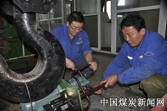 7 月30日早11点,室外32°C高温,选运区负责施工的57#机头更换电动翻版现场处于较密闭空间,3名忙于搭起吊架的职工汗如雨下,青工杨超峰放下导链,又将重达几十斤的铁翻版挪到跟前,一口气喝下矿党政领导送来的降温茶,“你看楼下满满当当的车进场拉煤,催着要按时完成任务呢,运转起来就是效益,咱干起来就特有劲”。说完,这名大学生青工用他早已被汗水油污浸透的衣衫抹了一把脸,加入到他的伙伴中干的热火朝天。