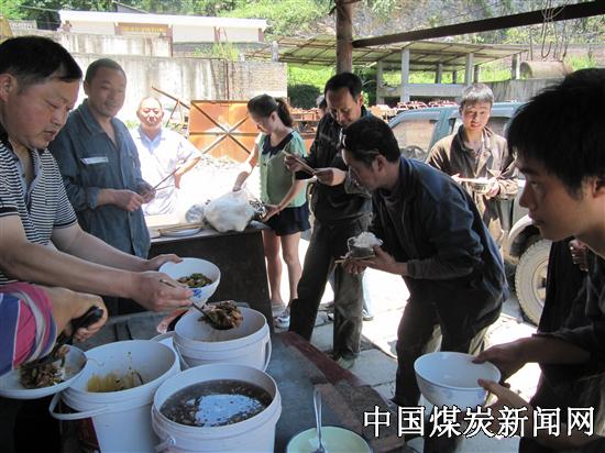 “师傅们,来来……吃饭了”,听到工作人员喊吃饭了,师傅们放下手中的活,连忙赶过来围着台子领取午餐。从早上忙到中午1点,大家冒着酷热的天气对风机进行检修,没时间顾着休息。考虑到大家已经累得精疲力竭了,公司组织为检修职工送上热气腾腾的午餐,此时,能吃上香喷喷的热饭,对他们来说是一件很满足的事。