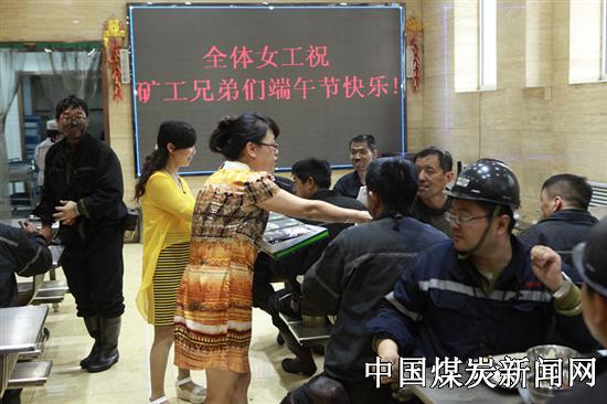 一位刚上井的矿工边吃粽子边说:“我们一上井,就跟回到家一样,马上就能吃到粽子,跟我老婆包的粽子一个味。女工们也真不容易,大热天给我们送粽子、送礼物,又嘱咐我们下井要注意安全,跟家人一样贴心,我感到很温暖”。