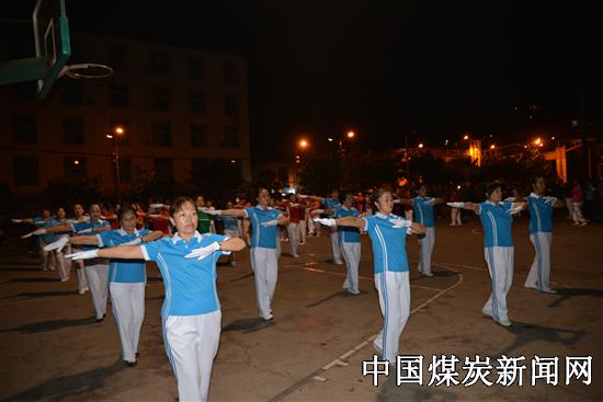 “现在开始做第二套佳木斯快乐舞步健身操,第一节,上肢运动,齐步走……”随着欢快的音乐节拍,一群身穿蓝色和红色运动服、手戴白色手套的中老年人群,每天晚上七点半,在川煤集团攀煤花山矿广场,自发跳起健身操。