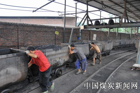 8月15日,上午10时,烈日当头,空气中也难得有一丝凉风。井口外高架轮吱吱地飞转着,此时正是生产的高峰时期,煤车滚滚涌出,运输工人紧张地忙碌着,将装有煤或矸石的矿车推走,再将空矿车推回送入井下。“我们每班都要喝几大盅水,却几乎不用上厕所,全部由汗液排除”。张师傅边说边从桶中舀出一大盅药茶水,咕噜几声就全部喝干,转身又忙活着去了。