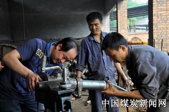 沿着轨道来到左侧,一架新煤车翻笼正在紧张地安装中,两位焊工师傅正顶着烈日在焊接,焊花四溅,烟雾缭绕。四位钳工齐心协力将设备移装到位,还不时检测一下安装的质量。汗水顺着他们的脸颊往下流,鼻尖上的汗水一颗颗往下滴,衣服几乎全被汗水湿透。“我们每天6:00钟上班,尽量避免中午最热时段作业,现在还不是最热时候;老翻笼使用年限太久,存在安全隐患,新翻笼必须尽快安装完毕,否则就会影响安全生产”。钳工班长李勇对我们说道。