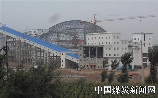 走进“鸟巢”,拱形圆顶是由数千根钢梁交织连接在一起,由于正在建设没有封顶,往上一望,蓝天白云与钢梁织网在眼里形成了一幅美妙的图画。中间是由华电重工安装的一台堆煤给料机,将负责分别对采掘场运出的煤炭进行筛分堆料分往不同的运输皮带通道。储煤仓直径85米,满仓状态储煤5万吨,地面是中间高四周低锥形地面,施工人员正在进行紧张的施工,设备上和煤仓四周的消防管路、除尘设备管路已基本铺设完毕,据安装人员介绍堆煤给料机环形大轨道安装也进入收尾阶段,很快就要试运。走出“鸟巢”看到周围新建成的筒形储煤仓、皮带走廊也正在紧张地进行附属土建工程施工、场地平整及机电安装焊接工作,相信筛分车间这座“鸟巢”的建成将会有力提高未来元露煤的品牌。