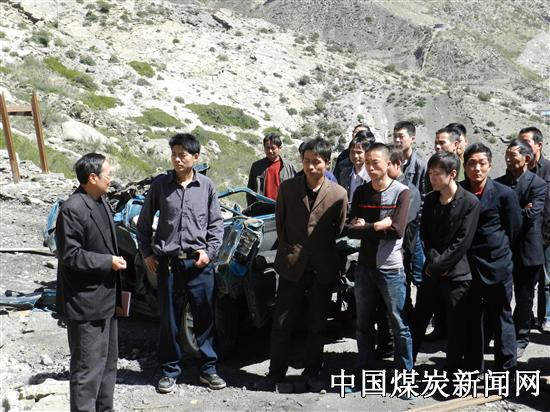 图为事故见证人员向员工在讲解7.2瓦斯事故发生情况