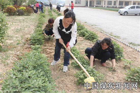 图为青年员工在场区绿化