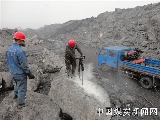 今早班前会穿爆队传达生产会指令,二区东344平盘爆量中出现矸石块,体积超过设备勺斗容积,对设备采装造成了中断影响,需要凿岩机钻孔,进行二次爆破,扫平“拦路虎”,命令就是行动。