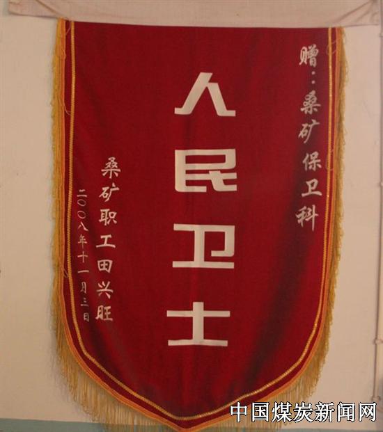 2008年11月3日,经济保卫部值班人员接到桑树坪矿职工田兴旺报警电话,声称家中可能有贼正在偷窃,他没敢声张,请求支援,我部值班人员立即出警,不到5分钟就赶到现场,将正在其家中进行盗窃的不法分子徐某当场抓获,扭送公安机关。于是第一面写着“人民卫士”的锦旗诞生了。