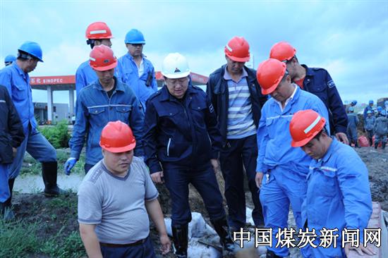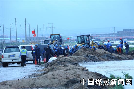 2:40分,总经理刘明与露天矿领导和储运公司领导,冒着瓢泼大雨,赶往公司,立即启动防洪预案,调集50余台(辆)推土机、前装机等工程机械和200名抗洪抢险队员冒雨赶往被洪水包围的储运公司地面运输系统区域,同时指挥露天矿可移动设备移往地势较高处。