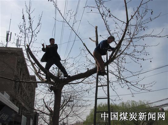 蒲白实业白水矿社区修剪超高树枝确保线路安全