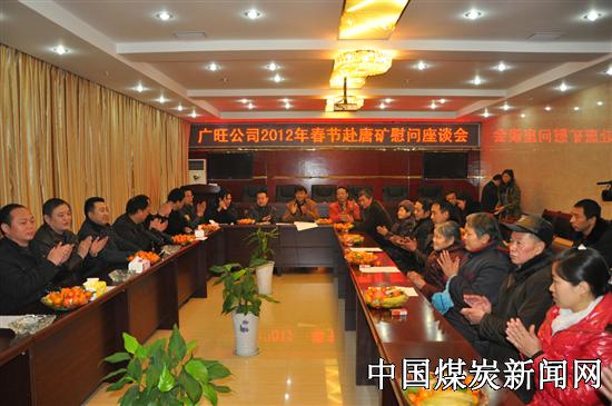 在唐家河矿座谈中,总经理曹永国、安监局长魏有贵一行向全矿职工居民拜年,衷心祝愿大家新年快乐,万事如意!祝福唐家河煤矿的明天更加美好!对该矿2011年所做的工作给予肯定,希望全矿职工在新的一年里,在广旺公司领导下,围绕企业中心工作,实现安全生产经营目标,努力建设高产高效矿井,促进企业和谐发展,再创佳绩。