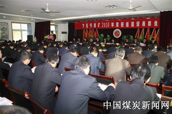 本网讯 2011年的第一天,铜川矿业公司下石节矿十里矿区锣鼓喧天,横幅高悬,彩旗招展,处处洋溢着一派喜迎新年、欢乐祥和的氛围。该矿矿长李文辉、党委书记李国壁、第一副矿长潘成忠、党委副书记、工会主席苟胜利、党委副书记李建荣等党政领导与来自全矿各条战线上的单位主管、优秀班组长代表齐聚一堂,隆重召开2010年度班组建设工作表彰会。
