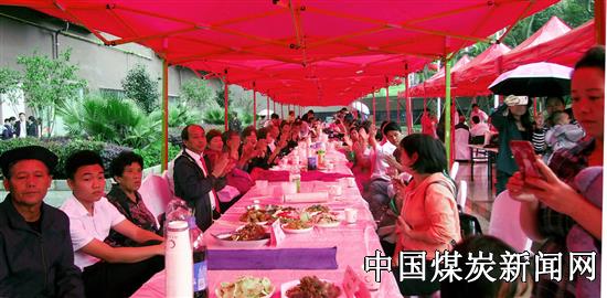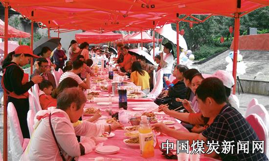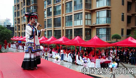 近几年来,盘州市社区文化活动不断丰富,小区的物业每逢佳节都会举办不同的特色活动。9月8日这天,小区请来了“夕阳红舞蹈队”、萨克斯演唱等组合表演了丰富多彩的文艺节目,小区居民表演的川剧变脸、彝族姑娘的独唱还不时赢得了阵阵掌声。居民们一边欣赏节目,一边品尝着百家宴,有的还不时吆喝着周围的居民品尝着自家的私房菜,一位大妈喊道:“大家快来尝尝我家的凉拌火腿,味道正,特下饭……”那边,大爷高声的叫道:“我家的‘和谐一家亲’酸菜鱼和着酒一起吃特别爽……”,一道道的家常菜都是他们用心制作的“用心菜”。300多道菜各具特色的美食佳肴,不一会就摆满了20多米的长桌,虽然天空下着小雨,但是,从大家的笑容中还是感受到了此时“天涯若比邻”的温暖。
