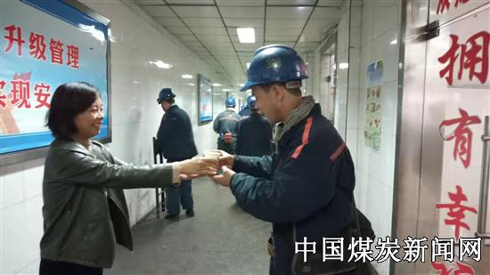 “师傅,来,喝杯菊花茶。嗯,这茶甜甜的、香香的,真好喝!来,帮俺钉下扣子好吗!好的!协安员一边说着一边麻利地将一粒纽扣缝在一职工的工作服上。“咱下井可千万不能违章啊,要时刻注意安全……” “放心,俺们都时刻绷紧安全这根弦呢,都自觉遵章作业!”这是淮北双龙矿业公司井口协安员开展协安活动的场景,她们用针针线线牵牢对矿工师傅们的真情。