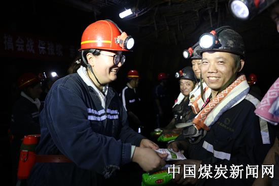 职工家属及协管员们提前换好工作服,佩戴好安全帽、矿灯、自救器,并在井口接受了安全培训。随后,在矿工会、调度室及安监处负责人的带领下,带上慰问品,列队向井下进发,徒步一个多小时来到了掘进三区3306轨道顺槽迎头,看到现场正在紧张忙碌、汗流浃背的职工,职工家属及协管员们自觉拿出毛巾上前为他们擦去脸上的汗水,并主动把慰问品送到他们手中,同时不忘叮嘱他们井下工作要注意安全,规范操作,杜绝违章,切实搞好现场安全生产。职工们也纷纷表示:一定遵章守纪、按章作业,努力工作,保质保量完成各项工作任务,为矿井四季度安全生产作出积极贡献。活动中,女工协管员代表宣读了《安全倡议书》,职工家属们演唱了《祝你平安》、《365个祝福》,现场充满了欢声笑语。