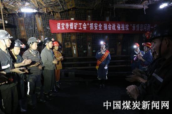 【本网讯】11月3日,山东能源肥矿集团梁宝寺煤矿工会根据矿党委部署,组织部分一线职工家属及女工安全协安员代表,深入井下采掘头面开展“抓安全 搞会战 保接续”亲情慰问活动,受到井下职工的热烈欢迎。