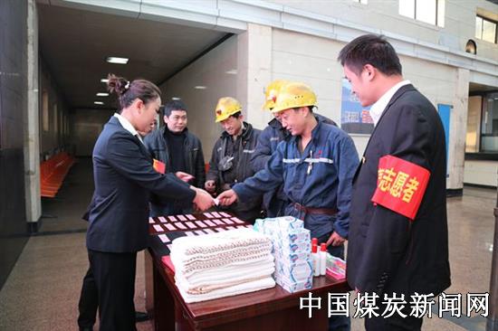 团员青年不顾冬日寒冷,未等入井职工换好工作衣,他们就早早地来到了井口人车场,并将活动需要的座椅摆放到位,一块块香皂、一条条毛巾、一瓶瓶洗发水等安全答题小礼品放置整齐。为不耽误职工入井时间,一杯杯暖心的热茶水也早已沏好,迎面扑来阵阵茉莉花茶的味道。