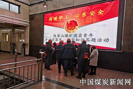 12月13日,陕煤集团铜川矿业公司陈家山煤矿团委组织团员青年志愿者在井口人车场为过往的职工送上一杯杯暖心的热茶水,现场开展了职工安全知识答题活动,为百日安全活动再添一道坚实的安全防线,增强了广大职工们做好年末关键时期安全生产工作的信心和决心。
