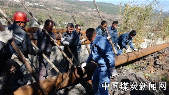 一波未平一波又起,他们又面临了安装难题,各管道对接口处有的沟深,有的处于湿滑地面,不利于正常施工,于是大家采用木板垫底、杉干撬动、三角架和葫芦提升、人工背抬等方式对管口精准对接。由于人员少,时间紧,工作量大,他们又在寒冷的天气里工作了一夜,直到第三日凌晨5时,200余米供水管路全部对接成功,改道任务完成,全矿的供水系统恢复正常。