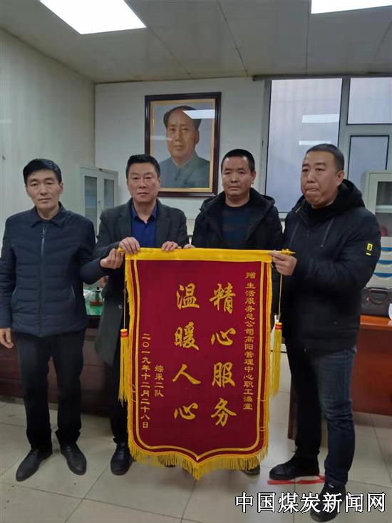 12月31日是山西焦煤汾西矿业集团公司的矿工节,在这个特殊的日子里,高阳管理中心职工澡堂收到了一份特殊的礼物。综采二队的 党支部书记和工会主席送来的一面“温暖人心,精心服务”的锦旗,对职工澡堂为矿工提供的优质贴心的服务表示感谢。