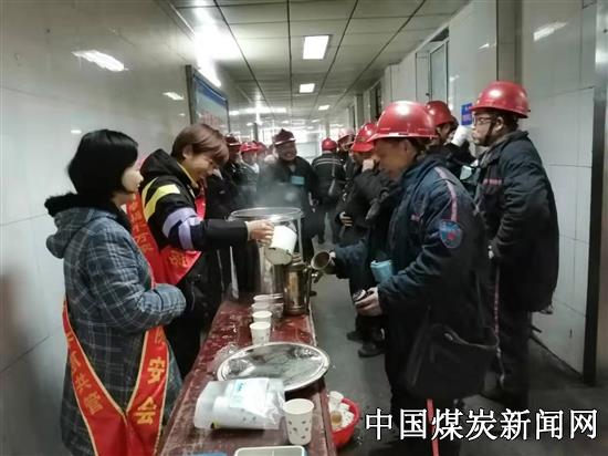 “师傅们,天冷!来喝杯红糖姜茶吧,暖暖身。”好,天真冷!这红糖姜茶是幸福牌的吧!俺可喝出了幸福的味道哟!这茶喝着就是暖和,现在咱们矿工就是幸福!师傅们!咱们工作中要注意安全呦……淮北双龙矿业公司井口大厅里机关、通风区协安分会协安员正忙的不可开交,端茶、缝衣服、钉纽扣,叮嘱声、笑声不时传来,热闹而温馨,形成了一道亮丽风景线。