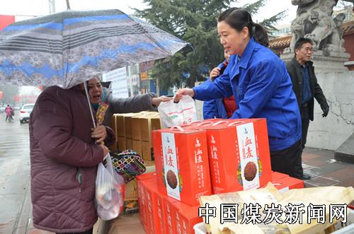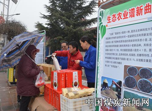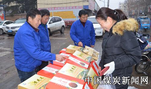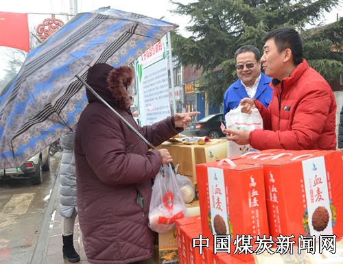 1月9日一早,蒲白矿业公司朱家河煤矿的三个生态农产品销售点在矿区公园、居家乐超市门前和俱乐部门口准备就绪,就迎来了第一批顾客。天虽然下着小雪,天气特别冷,但是大家销售的热情不减,刚把产品摆放好,公园门前的销售点就出售了一盒血麦面,随后又有顾客购买了黄花菜礼盒。咨询的顾客也络绎不绝。该矿党委书记带领班子成员齐上阵,他们一边热情的给顾客介绍产品的功效,一边为购买的顾客拿产品,这时有一位老大妈买了血麦面,看着老人手里提的还有别的东西,刚购买的血麦面不好带回家,该矿党委书记吩咐销售人员将老人和产品一起送了回去。