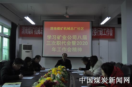 元月13日上午,蒲白渭南煤机厂社区组织全体在职员工学习传达矿业公司“三会”精神。