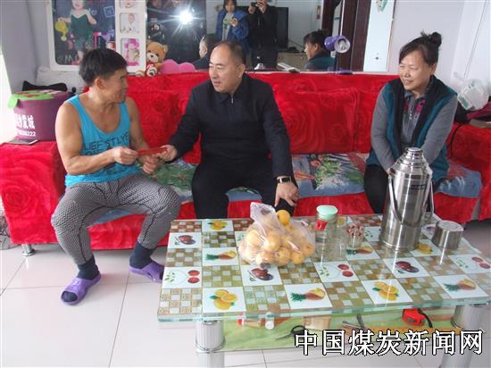 采煤工李新鹏一家七口人,父母年迈体衰,家中三个孩子一个患脑瘫疾病,两个孩子上学,妻子又无工作,矿和采煤队领导对他家重点帮扶,春节前又为他家送去慰问金,李新鹏的妻子热泪盈眶的说;“领导对我们家这么关系照顾,我们一家人都记在心里,我一定叮嘱李新鹏好好工作,为咱们矿多做贡献。”