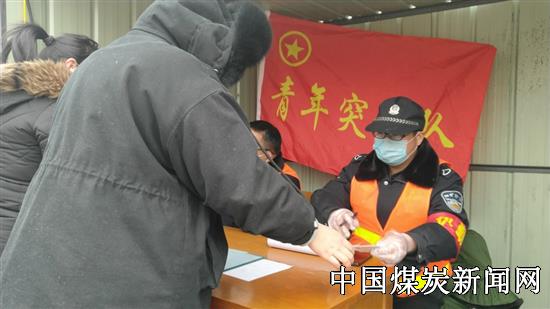 孙村煤矿团委充分发挥青年生力军和突击队作用,挺身而出、冲锋在前。蓝盾青年突击队,牢记“守护者”职责,在入矿门处设置体温检测岗,24小时双人值守,对每一名出入矿井的职工进行体温测量,并做好消毒和登记工作,对外来人员车辆进行劝返。严查入矿佩戴工作证、井上佩戴医用口罩、井下佩戴防尘口罩“三佩戴”,凡是不佩戴工作证和口罩者一律不准入矿,在矿内不佩戴工作证和口罩者一律劝离。他们用一抹深蓝守护矿区安全,成为孙煤人最安心的盾。