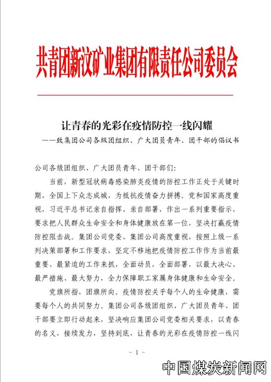 当前,新型冠状病毒感染肺炎疫情的防控工作正处于关键时期,全国上下众志成城,为抵抗疫情奋力拼搏。党有号召、团有行动。山东能源新矿团委第一时间向广大团员青年发出倡议书,制定下发了《关于在防控疫情阻击战中充分发挥共青团生力军和突击队作用的通知》吹响了疫情防控青春“集结号”。