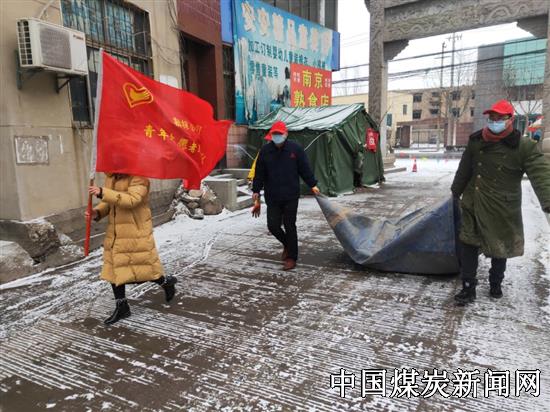 勘探公司团委成立疫情防控青年突击队,组织团员青年志愿者积极响应,科学有序的参与疫情防控工作。面对由于降雪原因,气温下降的实际状况,疫情防控青年突击队青年志愿者们立即行动,用加厚篷布为疫情防控服务站围护保暖,为一线社区疫情防控站夜晚值班人员营造良好的工作环境。
