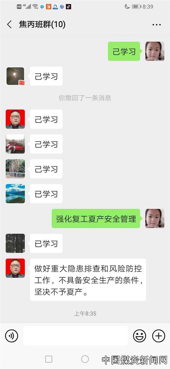 随着当前复工提产进入到关键时刻,增强疫情自我防控意识和加强安全环保思想教育就显得尤为重要。为了让员工时刻绷紧安全弦,引导员工做到“人返厂、记安全、心到岗”,以良好的精神状态投入到日常工作中。江西省投资集团丰矿集团新高焦化本着“疫情防控第一、安全生产第一”的总体要求,一改以往周五集中安全学习方式,充分利用现代信息技术手段,通过手机工作微信群开展员工安全环保思想教育学习,以手机微信群暂时替代了当前特殊时期的集中学习。