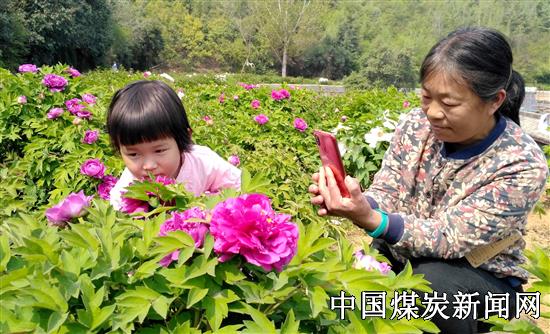 如今,许多职工家属走出家门,来到矿区牡丹园,徜徉花海,放飞心情,领略大自然的美好与惬意。据了解,该园内牡丹品种多样,主要以“洛阳红”为主打花卉,并套种有芍药等植物,成片花海装扮了整个矿区,如诗如画,美不胜收。图为4月8日,午后散步的职工家属用手机记录牡丹花开的最美瞬间。